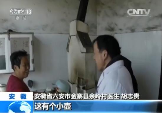 安徽省六安市金寨縣余嶺村醫(yī)生胡志貴:在燒飯呢,你高血壓不能吃太多鹽,這有個(gè)小壺,教你吃多少鹽的,有個(gè)刻度標(biāo)志。