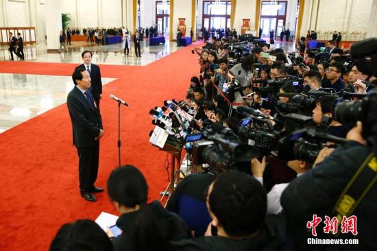 3月3日,全國政協(xié)十二屆五次會議在北京人民大會堂開幕。國家文物局局長劉玉珠在“部長通道”接受記者采訪。中新社記者 富田 攝