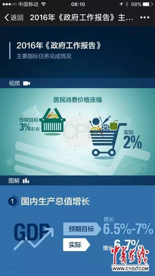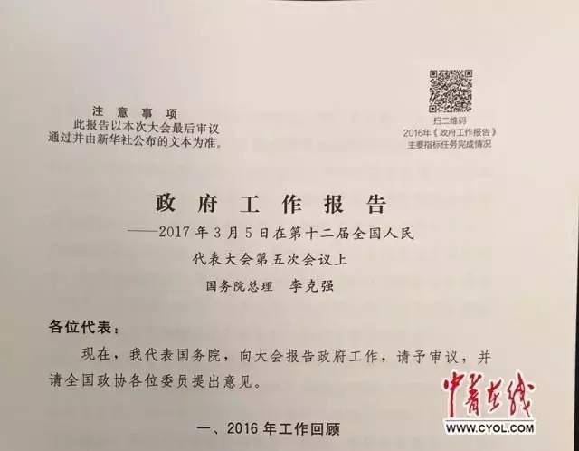 來自人民大會(huì)堂的最新消息:今年的政府工作報(bào)告有了視頻版!二維碼被印到了政府工作報(bào)告首頁的右上角,用手機(jī)掃一掃,出現(xiàn)了一個(gè)活潑的H5頁面。點(diǎn)擊播放,2016年政府主要指標(biāo)任務(wù)完成情況以動(dòng)畫視頻形式一覽無余。同時(shí),視頻中的對比數(shù)據(jù)還以靜態(tài)圖片呈現(xiàn),讓人大代表、政協(xié)委員、公眾直觀和從容地了解政府的工作。