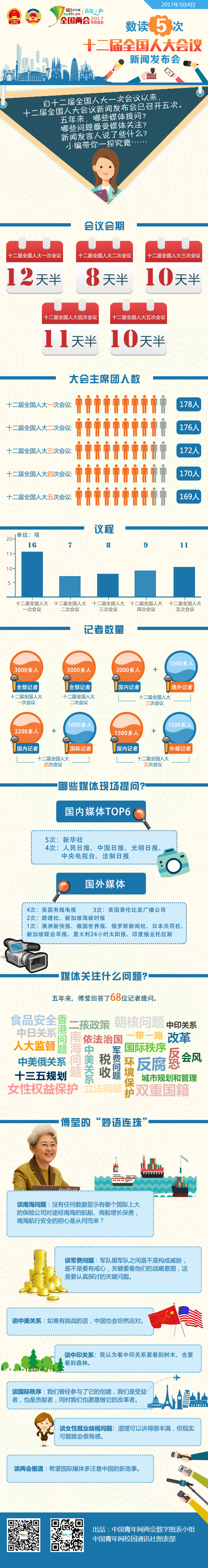 中國青年網(wǎng)北京3月4日電自十二屆全國人大一次會議以來,十二屆全國人大會議新聞發(fā)布會已召開五次。五年來,哪些媒體提問?哪些問題最受媒體關(guān)注?新聞發(fā)言人說了些什么?小編帶你一探究竟……