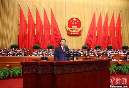 國(guó)務(wù)院總理李克強(qiáng)作政府工作報(bào)告。中新社記者 劉震 攝