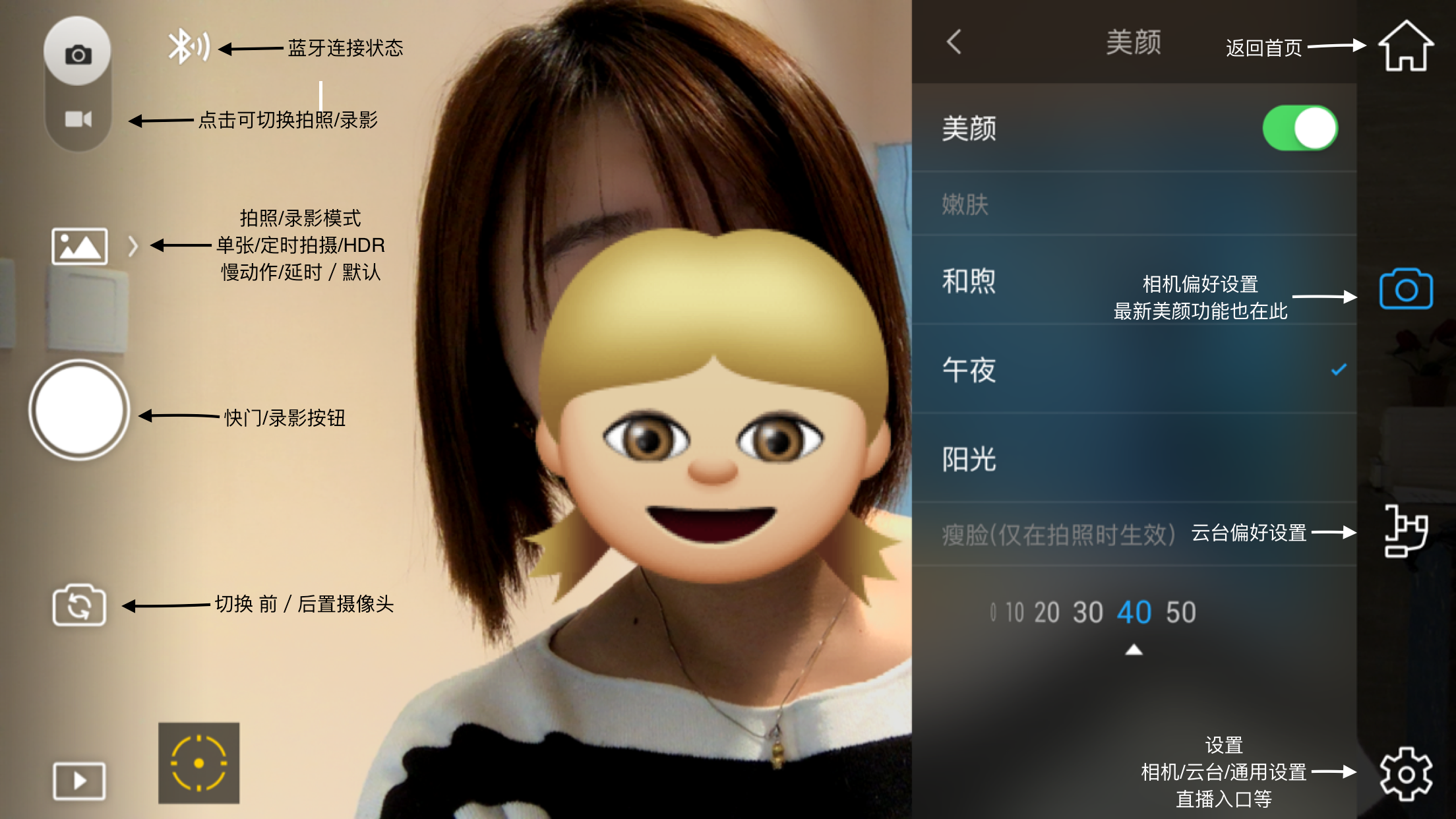 第三、在畫面平穩(wěn)的基礎(chǔ)上,Osmo Mobile Silver銀色版增加了美顏功能,即無(wú)論你在視頻還是拍照過(guò)程中皮膚都能像雞蛋一樣滑溜。環(huán)球無(wú)人機(jī)頻道預(yù)計(jì)該功能會(huì)在接下來(lái)的美女直播/美女記者錄制視頻活動(dòng)中大放異彩。不信你瞧:
