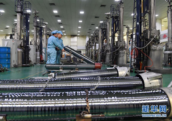 2017年2月份中國制造業(yè)采購經(jīng)理指數(shù)(PMI)為51.6%,該指數(shù)連續(xù)7個月保持在50%以上。圖為河北省寧晉縣晶龍集團生產(chǎn)車間。(新華社記者 牟宇 攝)
