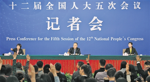 3月10日,十二屆全國人大五次會議新聞中心舉行記者會,國家工商行政管理總局局長張茅就深化商事制度改革問題答記者問。記者 李景錄攝