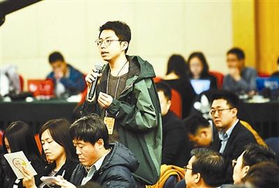 本報(bào)記者在向教育部長(zhǎng)提問(wèn) 攝影/本報(bào)記者 郝羿