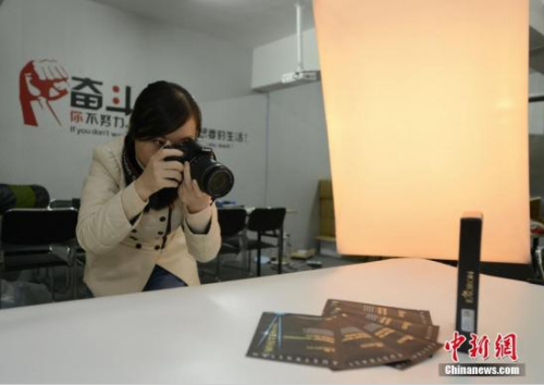 資料圖:2016年的“雙十一”,海歸女姚瑤除了自己當(dāng)客服,還在公司充當(dāng)起攝影師。楊華峰 攝