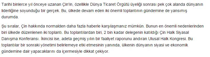 我們也可以從經(jīng)濟(jì)角度來觀察兩會。通過“一帶一路”建設(shè)來振興古老的陸上和海上絲綢之路,對于中國加強(qiáng)其在從亞洲東部延伸到歐洲最西端、甚至是非洲東海岸的這一片遼闊區(qū)域的影響力來說極其重要。其實(shí),建設(shè)“一帶一路”也是王毅部長關(guān)于國際關(guān)系中合作共贏關(guān)系的具體體現(xiàn)。如果我們在充分理解上述講話的基礎(chǔ)上,再來回顧中國駐土耳其大使郁紅陽在兩會開幕前夕的一次講話,就能更深地理解其意義。郁大使在伊斯坦布爾舉辦的“中國新年晚宴”上表示,中國是土耳其在全球的第二大、在亞洲的最大貿(mào)易伙伴,兩國在交通、能源、電子商務(wù)、農(nóng)業(yè)和質(zhì)量監(jiān)督等領(lǐng)域?qū)⒓訌?qiáng)合作,這種合作當(dāng)然包括兩國領(lǐng)導(dǎo)人之間的互訪和共同參與“一帶一路”建設(shè)。事實(shí)上,“一帶一路”倡議的影響在沿線國家已經(jīng)有所體現(xiàn)。它所創(chuàng)造的就業(yè)機(jī)會并不局限于中國國內(nèi),它為沿線國家和城市的經(jīng)濟(jì)發(fā)展作出了巨大貢獻(xiàn)?梢哉f,“一帶一路”倡議前景光明。