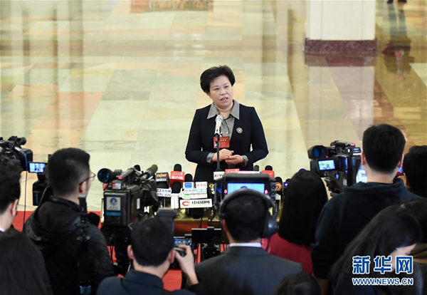 3月15日,中國氣象局局長劉雅鳴接受采訪。 新華社記者 陳曄華 攝