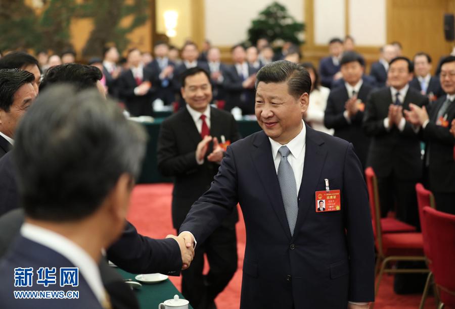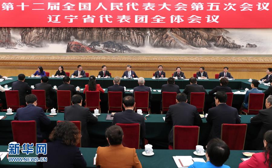 圖為:2017年3月7日,中共中央總書記、國家主席、中央軍委主席習(xí)近平參加十二屆全國人大五次會議遼寧代表團(tuán)的審議。