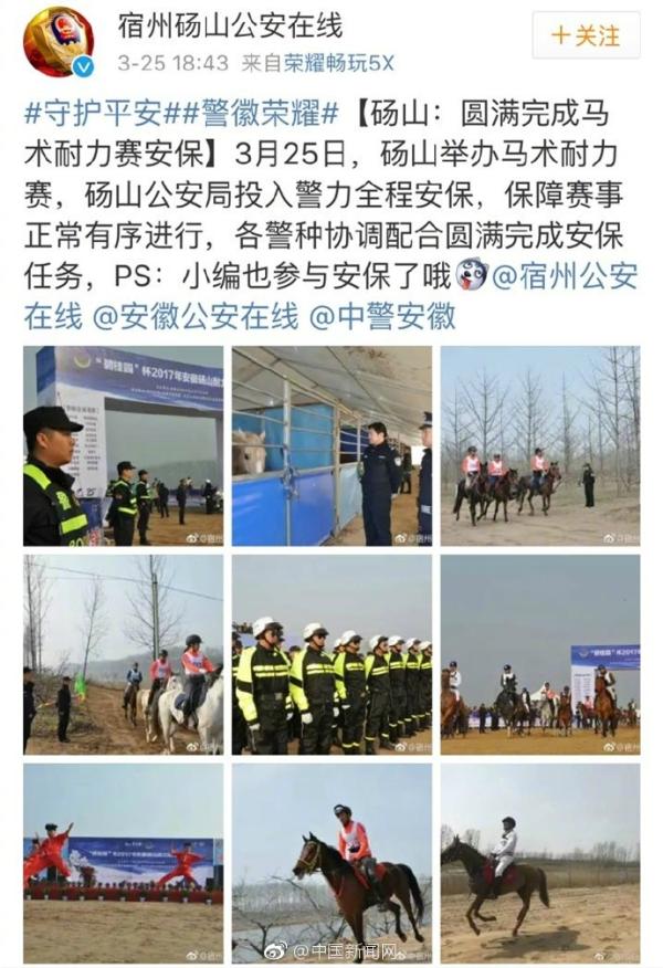 25日,安徽@宿州碭山公安在線 稱:“近日馬術(shù)耐力賽在碭山舉辦,警方保障賽事有序進(jìn)行…”一條很平常的微博,回復(fù)里警嫂一句:“可以把我老公還給我了吧”,令無(wú)數(shù)網(wǎng)友心酸……她的老公,就是負(fù)責(zé)安保的碭山刑警隊(duì)的一員。為愛(ài)堅(jiān)守,致敬!