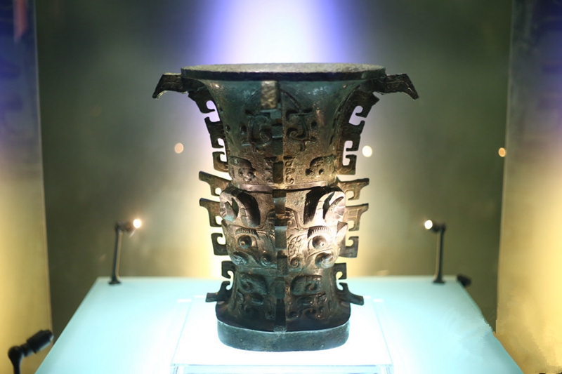 鎮(zhèn)館之寶“何尊”,1963年出土于寶雞市賈村鎮(zhèn),是我國(guó)西周早期一名何姓貴族所作的祭器。是我國(guó)首批禁止出國(guó)(境)展覽文物、國(guó)家一級(jí)文物。尊內(nèi)底鑄有銘文12行、122字銘文,其中宅茲中國(guó)為“中國(guó)”一詞最早的文字記載,記述了成王繼承武王遺志,營(yíng)建東都成周之事。