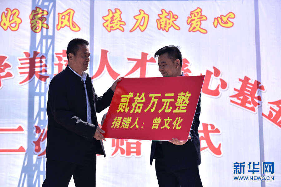 曾文化向“美蓮人才愛(ài)心基金”捐贈(zèng)20萬(wàn)元。(鐘炆秦?cái)z)