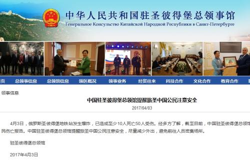 中新網(wǎng)4月4日電 4月3日,俄羅斯圣彼得堡地鐵站發(fā)生爆炸,已造成數(shù)十人傷亡,中國駐圣彼得堡總領(lǐng)館官網(wǎng)發(fā)布消息稱,暫無中國公民傷亡報告,并提醒旅圣中國公民注意安全