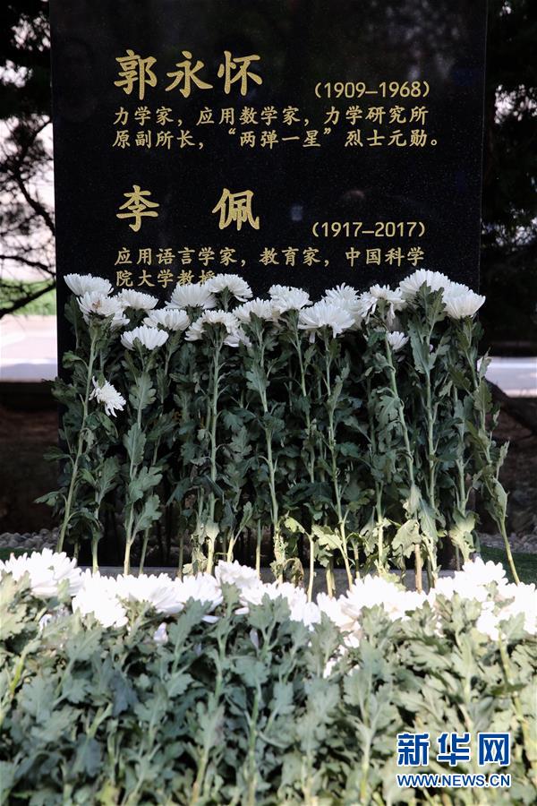 蒼松翠柏環(huán)繞,5日上午,郭永懷與夫人李佩二人的骨灰被合葬在中國科學院力學所的郭永懷塑像之下。“一對伉儷,兩種傳奇;懷瑾佩瑜,師表后繼!北倪@樣寫。