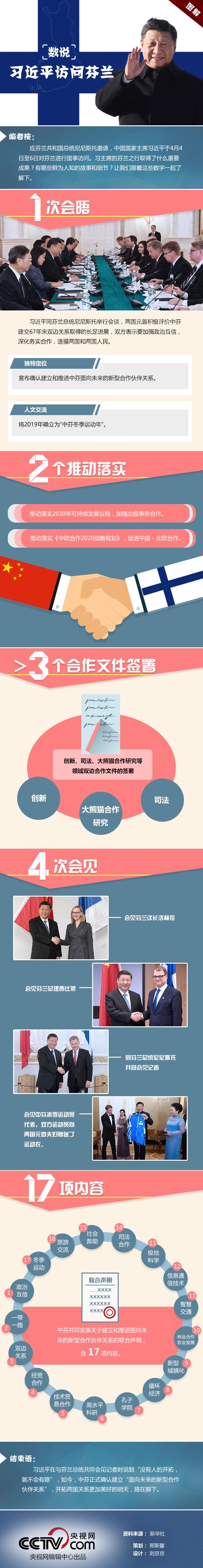 央視網(wǎng)消息:應(yīng)芬蘭共和國總統(tǒng)尼尼斯托邀請,中國國家主席習(xí)近平于4月4日至6日對芬蘭進(jìn)行國事訪問。習(xí)主席的芬蘭之行取得了什么重要成果?有哪些鮮為人知的故事和細(xì)節(jié)?讓我們跟著這些數(shù)字一起了解下。