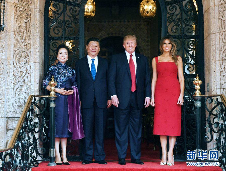 當?shù)貢r間4月6日,國家主席習近平在美國佛羅里達州海湖莊園同美國總統(tǒng)特朗普舉行中美元首會晤。這是習近平和夫人彭麗媛同特朗普和夫人梅拉尼婭合影留念。新華社記者 饒愛民 攝