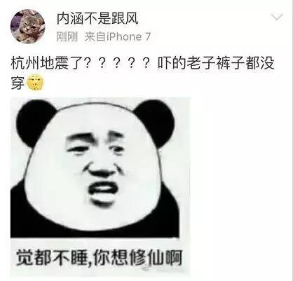 胡胡胡曉琴:坐標(biāo)蘭溪,有震感!嚇懵寶寶了,搖醒老公只換來淡淡的一句睡覺,然后繼續(xù)睡了睡了睡了了了。!笑話,老娘的心現(xiàn)在還在顫抖好嗎