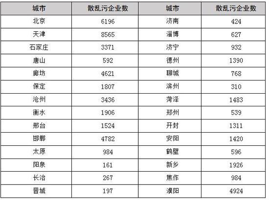 四是各城市排查數(shù)量差異較大!2+26”個(gè)城市共報(bào)送“散亂污”企業(yè)數(shù)5.6萬余家。北京市6196家,天津市8565家,河北省22039家(廊坊市4621家、唐山市592家),山西省1609家(太原市984家、陽泉市161家),山東省5934家(菏澤市1483家、濱州市310家),河南省11700家(濮陽市4924家、鄭州市539家)。
