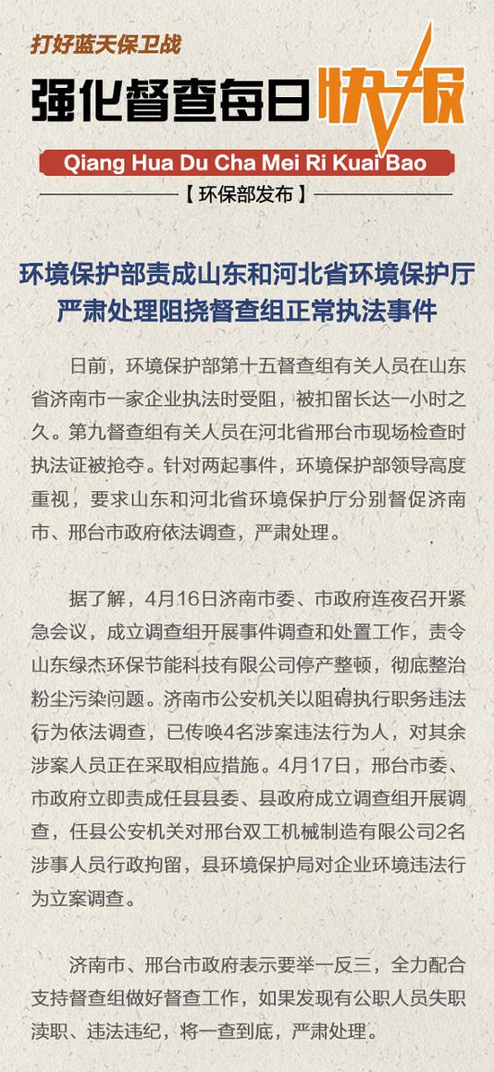 原標(biāo)題:環(huán)保部責(zé)成山東和河北省嚴(yán)肅處理阻撓督查組正常執(zhí)法事件