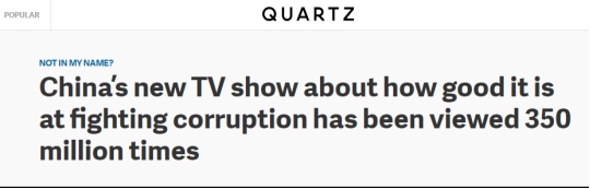 美國財經(jīng)網(wǎng)站Quartz則以《中國的最新電視劇介紹政府雷厲風行的反腐斗爭,觀看次數(shù)已達3.5億次》作為文章標題,并且強調(diào)這部耗資1.2億元的電視劇僅僅是中國檢察院影視中心已生產(chǎn)的5部反貪污題材的戲劇之一。