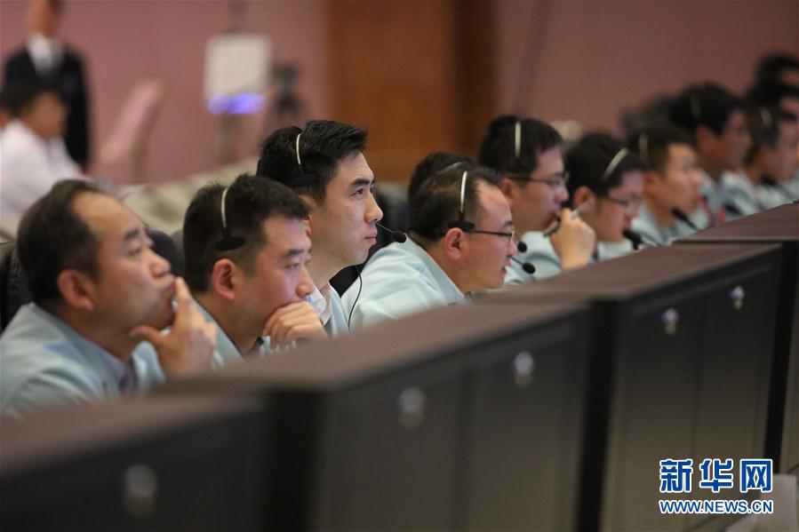 4月22日,科技人員在北京航天飛行控制中心大廳內(nèi)工作。(于濤 攝)