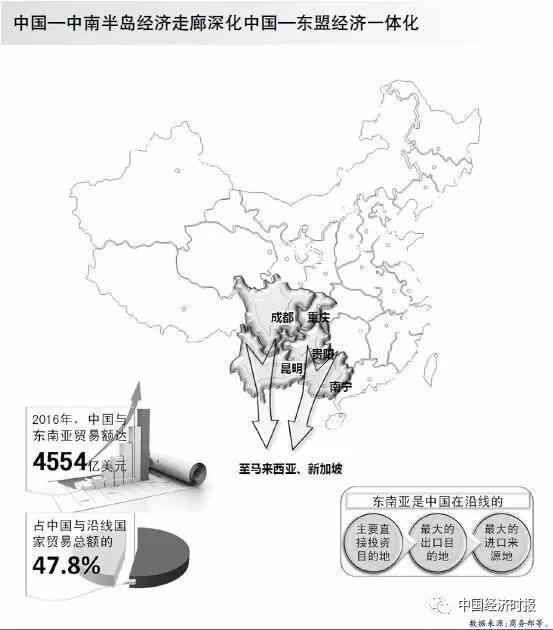 中國—中南半島經(jīng)濟走廊是中國西南通往印度洋的重要通道,中國與中南半島國家的貿(mào)易格局并不均衡,各國與中國之間的貿(mào)易進展不一,“一帶一路”倡議實施后,沿線國家之間的貿(mào)易和投資呈加速推進態(tài)勢,基礎(chǔ)設(shè)施不斷改善,印尼雅萬高鐵、中老鐵路、中泰鐵路、馬來西亞南部鐵路、匈塞鐵路、瓜達爾港等重大項目都在有序推進。
