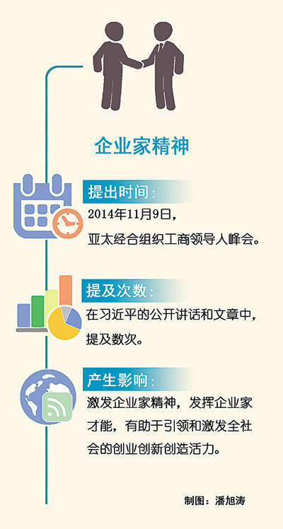 “我們全面深化改革,就要激發(fā)市場蘊藏的活力。市場活力來自于人,特別是來自于企業(yè)家,來自于企業(yè)家精神!2014年11月9日,在亞太經(jīng)合組織工商領導人峰會上,面對來自數(shù)十個國家和地區(qū)的1500多位工商界代表,國家主席習近平特別提及了企業(yè)家精神。