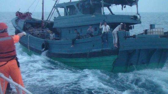 大陸漁船漁民阻止海巡人員登船(“澎湖海巡隊(duì)”提供)