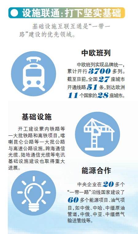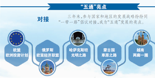 本版以圖文形式,為讀者回顧總結(jié)三年多來“一帶一路”建設(shè)的“五通”成果。