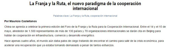 。ㄗ髡呦蹈鐐惐葋営浾,原文鏈接:La Franja y la Ruta, el nuevo paradigma de la cooperación internacional)