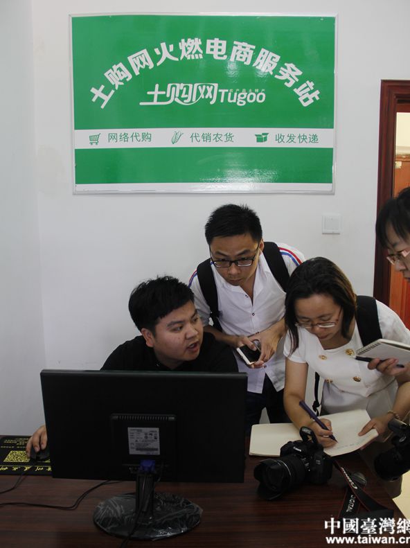 土購火燃電商服務(wù)站站長向記者介紹站點運營情況。(中國臺灣網(wǎng) 盧佳靜 攝)