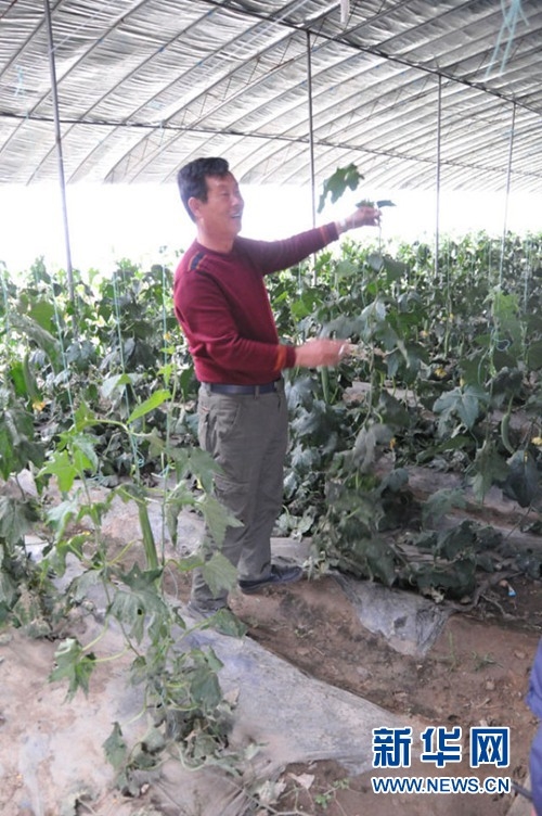 山東壽光的漢族“老支書”盛學(xué)武正在打理蔬菜。新華社記者魏兆陽攝
