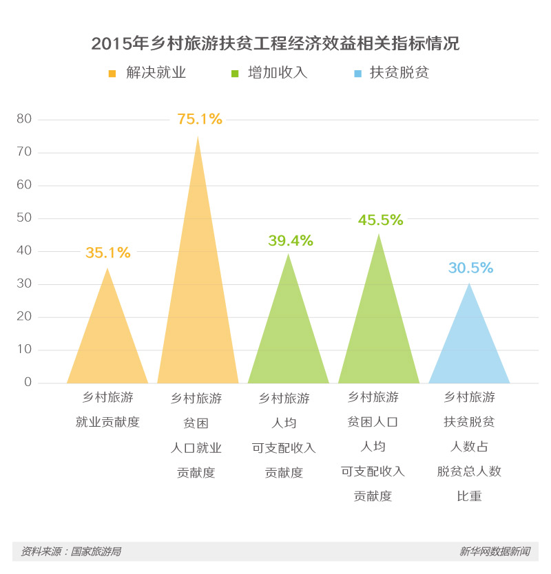 鄉(xiāng)村旅游既是農(nóng)民就業(yè)的重要渠道之一,也已成為有效吸納貧困人口就業(yè)的主要途經(jīng),進而逐漸成為農(nóng)村貧困人口脫貧的重要力量。國家旅游局發(fā)布的《全國鄉(xiāng)村旅游扶貧觀測報告》顯示,2015年,鄉(xiāng)村旅游帶來的農(nóng)民人均收入占農(nóng)民人均年收入的39.4%,貧困村通過鄉(xiāng)村旅游脫貧人數(shù)達264萬人,占全國脫貧總?cè)藬?shù)的18.3%。