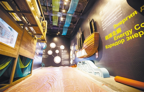 這是6月7日在哈薩克斯坦阿斯塔納專項(xiàng)世博會(huì)中國(guó)館內(nèi)拍攝的“能源走廊”展區(qū)。 本屆世博會(huì)中國(guó)館圍繞“未來(lái)能源 綠色絲路”主題,通過(guò)實(shí)物模型、電子和機(jī)械沙盤、多媒體裝置、虛擬現(xiàn)實(shí)技術(shù)、3D弧幕電影等方式,全面介紹了中國(guó)在能源開(kāi)發(fā)與利用進(jìn)程中的代表性成果。 (新華社發(fā))