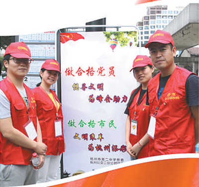 杭州市第二中學(xué)“做合格黨員,為峰會(huì)助力”黨員志愿服務(wù)活動(dòng)。
