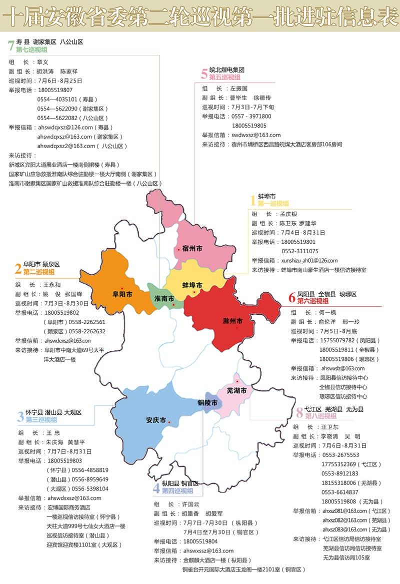 現(xiàn)將十屆安徽省委第二輪巡視第一批進(jìn)駐的各巡視組負(fù)責(zé)人、巡視時(shí)間、舉報(bào)電話、舉報(bào)信箱、來訪接待地址予以公布。