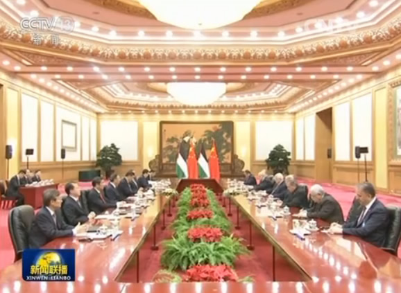 央視網(wǎng)消息(新聞聯(lián)播):歡迎儀式后,習(xí)近平主席在人民大會(huì)堂同阿巴斯總統(tǒng)舉行會(huì)談。