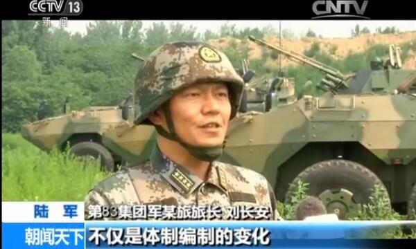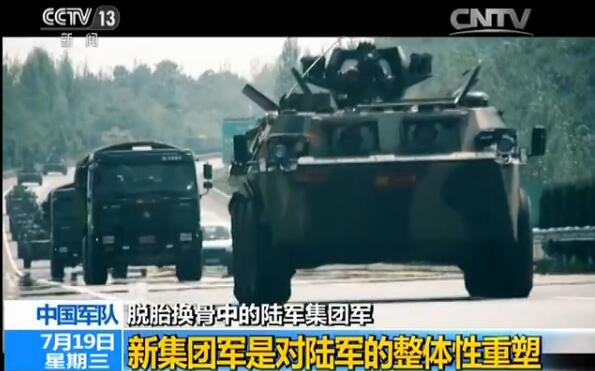 楊宇軍:陸軍集團(tuán)軍的調(diào)整:以原18個集團(tuán)軍為基礎(chǔ),調(diào)整組建13個集團(tuán)軍,番號分別為:中國人民解放軍陸軍第七十一、七十二、七十三、七十四、七十五、七十六、七十七、七十八、七十九、八十、八十一、八十二和八十三集團(tuán)軍。