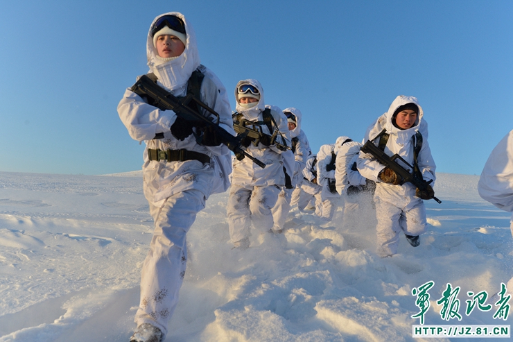 2014年10月,在東北某森林腹地,特戰(zhàn)官兵進(jìn)行了技戰(zhàn)術(shù)綜合演練,三天兩夜的時間,參訓(xùn)官兵們翻高山、跨冰河、住冰窟,睡雪洞;2015年開春,寒風(fēng)凜冽、積雪過膝,從旅長到班長、從政委到支委,從男兵到女兵,在-30℃的雪原中摸爬滾打、攻堅奪隘……這支英勇威猛的特戰(zhàn)勁旅作為決勝戰(zhàn)場的作戰(zhàn)力量,正在改革強軍征途中枕戈待旦,直等一聲令下,用忠誠和血性在使命的圖騰上揮寫榮光。