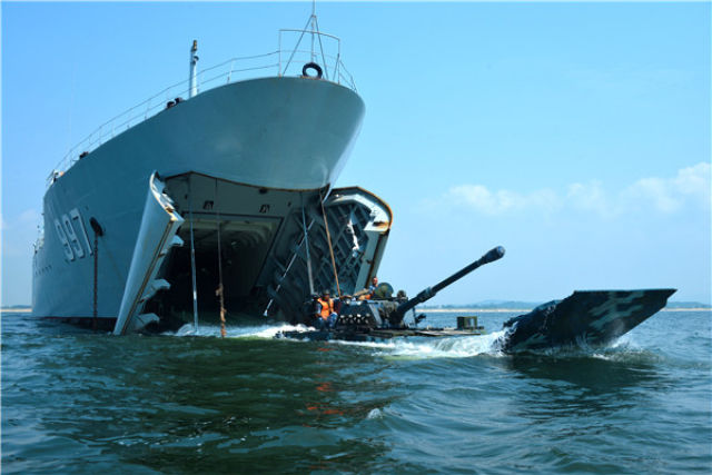 兩棲突擊車海上排進(jìn)攻戰(zhàn)斗射擊。
