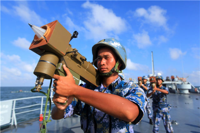 射手使用防空導(dǎo)彈模擬訓(xùn)練系統(tǒng)快速捕捉目標(biāo)。是不是很新奇?