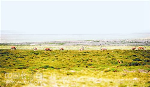 8月7日,青?煽晌骼镒匀槐Wo(hù)區(qū)內(nèi),一群藏羚羊在悠然吃草。由于近年來對可可西里的保護(hù),這里的藏羚羊由2萬多只恢復(fù)到6萬多只。 經(jīng)濟(jì)日報(bào)記者 高興貴攝