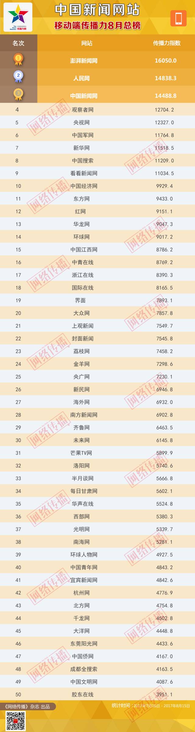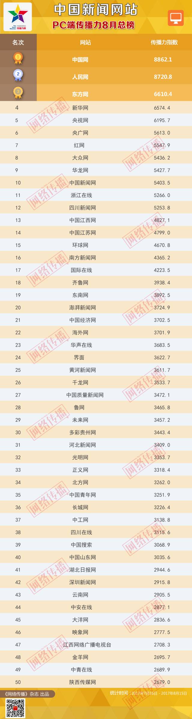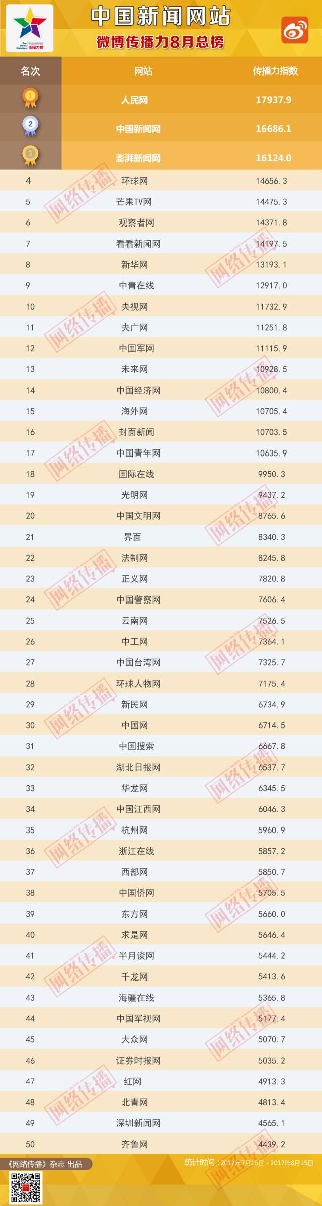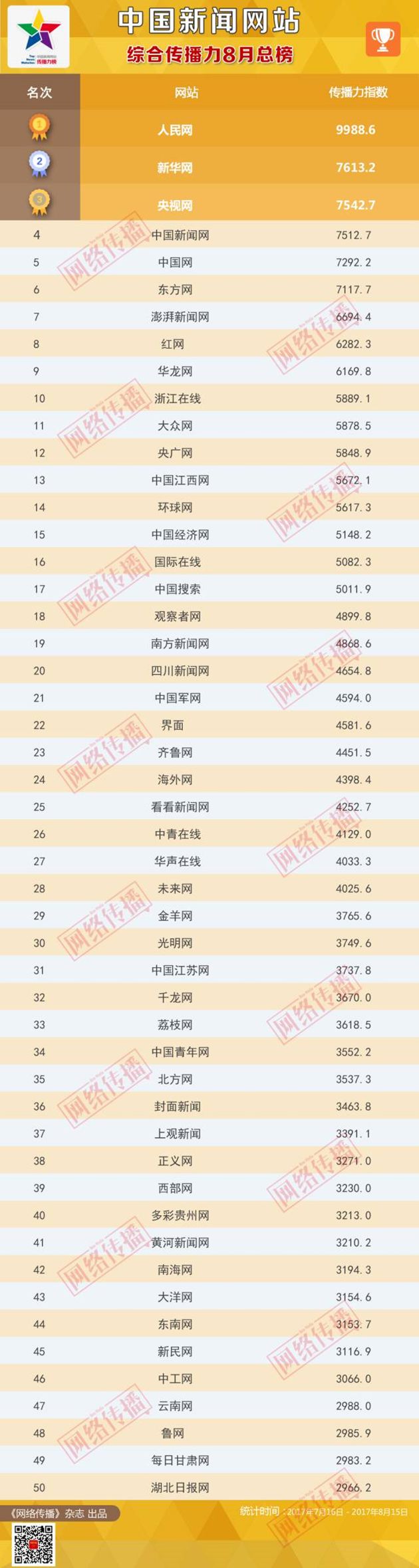 中國(guó)新聞網(wǎng)站傳播力2017年8月總榜
