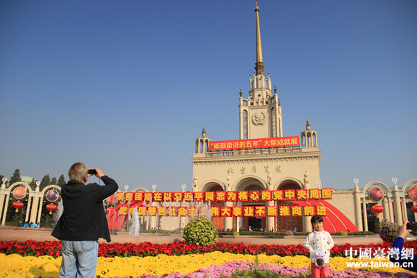 前來(lái)參觀的觀眾在門(mén)口拍照留念。(中國(guó)臺(tái)灣網(wǎng) 李寧 攝)