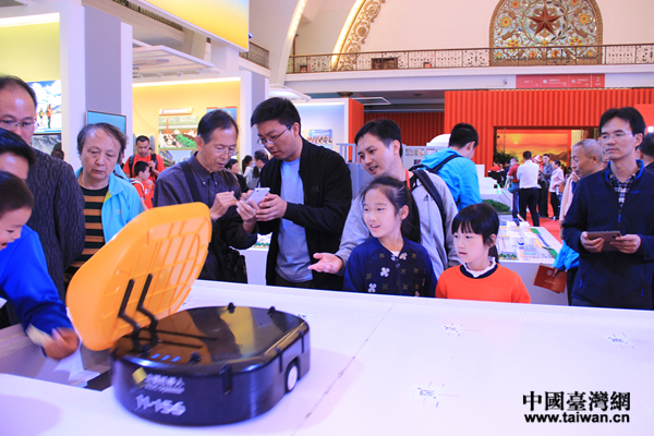 智能機(jī)器人分揀系統(tǒng)引來(lái)人們觀看。(中國(guó)臺(tái)灣網(wǎng) 李寧 攝)