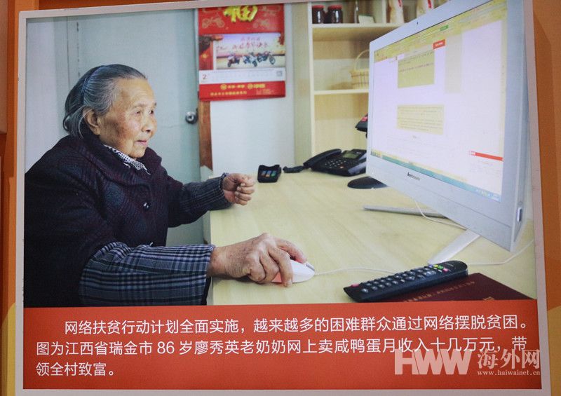 今年86歲的廖秀英老奶奶是咸鴨蛋腌制手藝人,也是位不折不扣的網(wǎng)絡(luò)達人。文化建設(shè)展區(qū)的墻上,有一副廖奶奶認真操作電腦的照片,非常醒目。從事醫(yī)護工作的羅女士說,老人上網(wǎng)就很少見,而八旬老人靠網(wǎng)上賣咸鴨蛋“月收入十幾萬元”,簡直是難以置信!