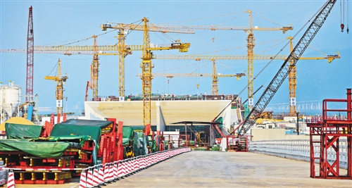 港珠澳大橋西人工島的海底隧道入口建設(shè)現(xiàn)場。新華社記者 劉大偉攝