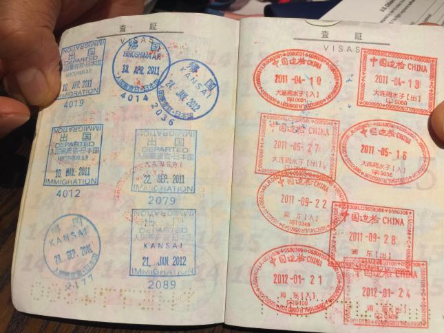 ▲佐藤先生展示近年頻繁往來中國的出入境紀錄
