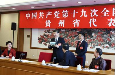 央視網(wǎng)消息:2017年10月19日,北京。黨的十九大貴州省代表團(tuán)討論正在熱烈進(jìn)行:代表們從十九大報告說起,脫貧攻堅(jiān)、教育醫(yī)療、基層黨建……從發(fā)展的道路方向,到實(shí)踐的落地措施,他們的話題起了一茬又一茬。