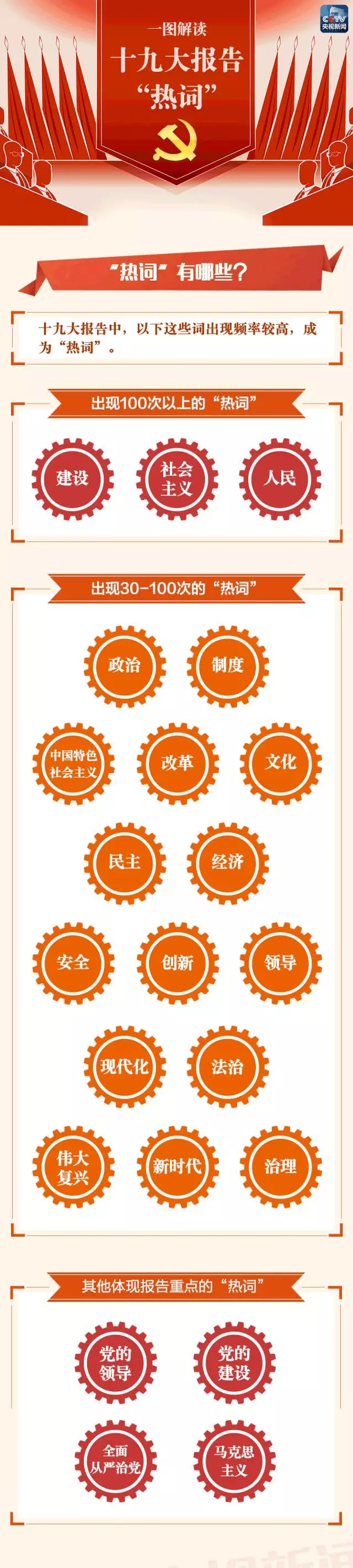 報(bào)告中哪些詞最“熱”,哪些詞預(yù)示了未來的發(fā)展方向?相比十八大報(bào)告,本次報(bào)告又有哪些全新的關(guān)鍵詞?問題的答案盡在圖中↓↓↓